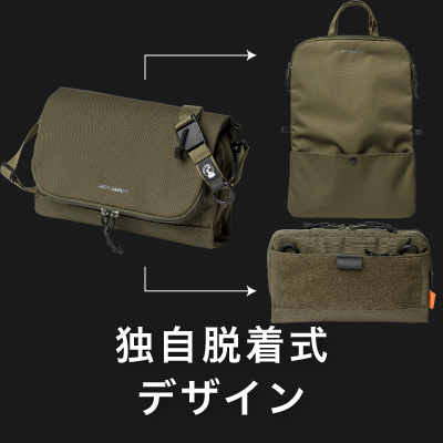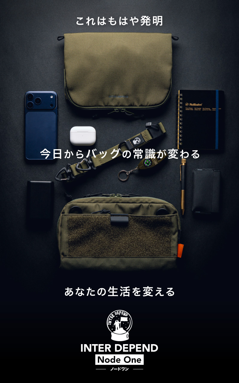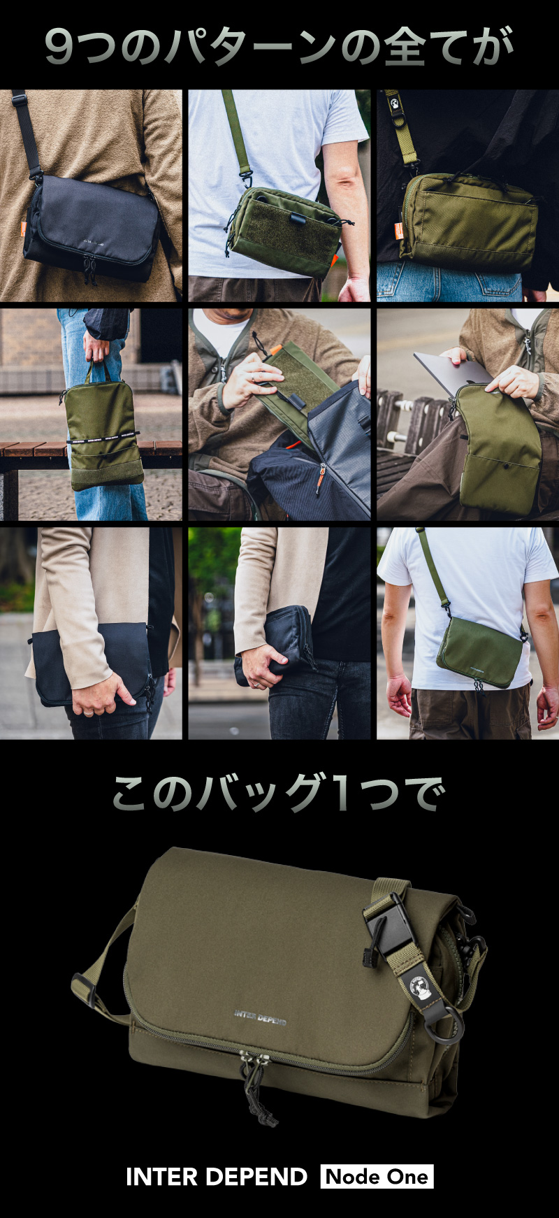 Node Oneは、使う人やシーンに合わせて姿を変える、拡張性を備えたショルダーバッグです。