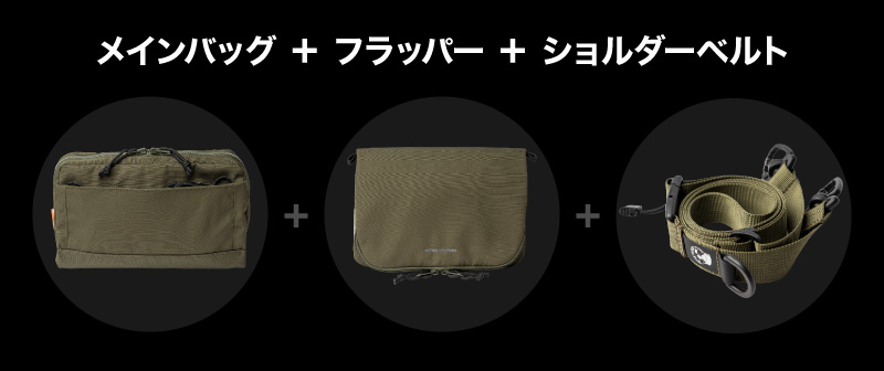 メインバッグ、取り外し可能なフラップ、そしてショルダーベルト。